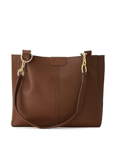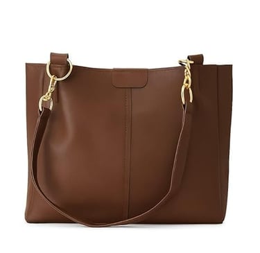 6. Brown Faux Leather Tote Bag with Gold Hardware