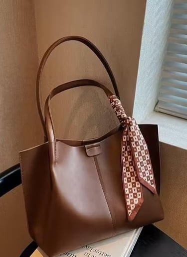2. Brown PU Leather Tote Bag