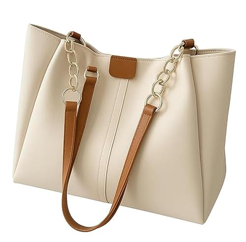 · Stylish tote bag with a modern chain-accented look.